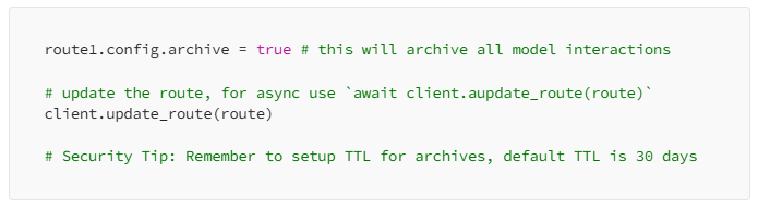 You can use Javelin in your model fine-tuning workflows. Just enable archiving on your Javelin routes, and all model interactions are automatically enabled:
