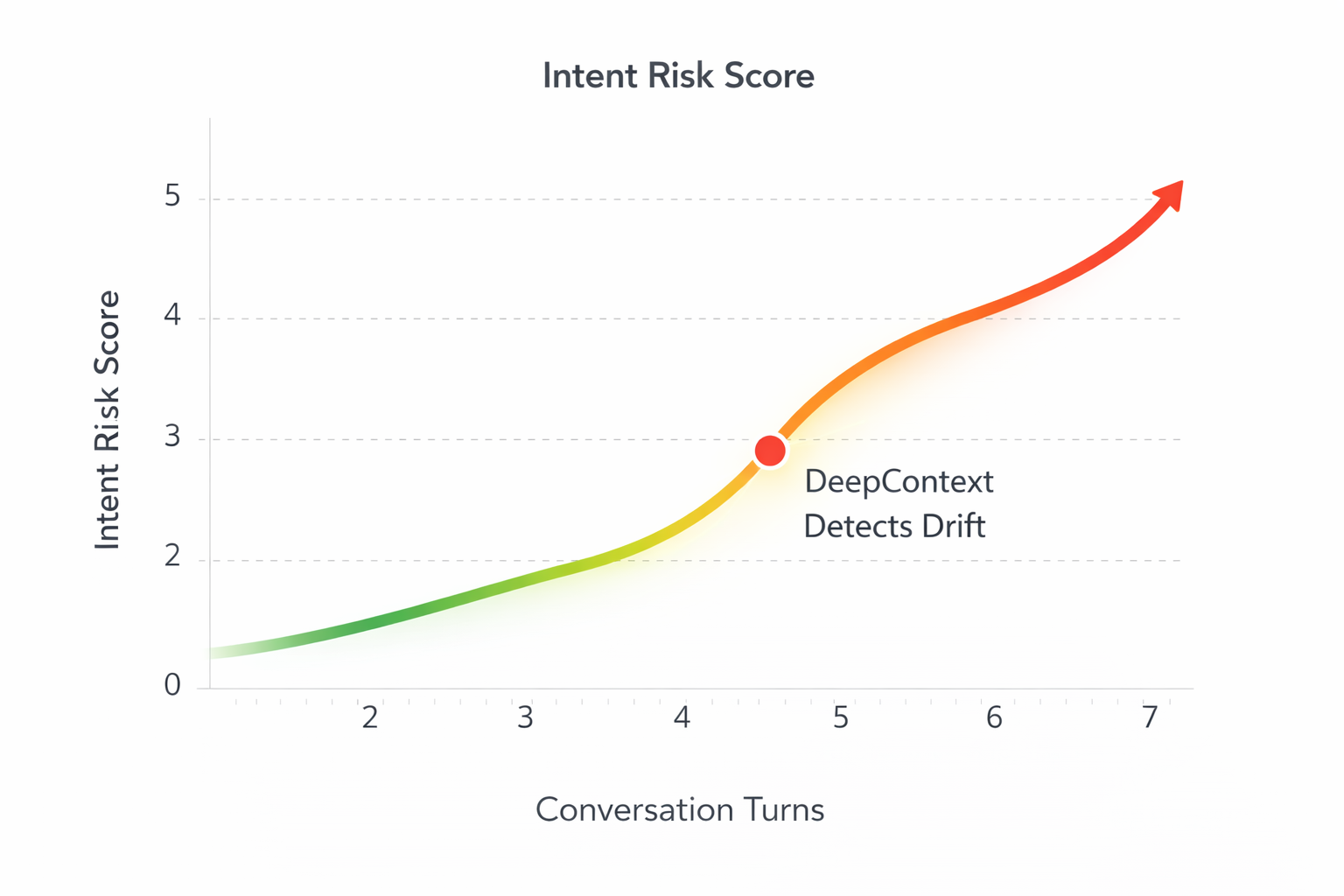 A stateless classifier might miss this drift entirely because no single turn looks malicious. But an intent security layer, tracking purpose over time, would notice the trajectory of requests diverging from the original scope and intervene. Because DeepContext maintains a continuous intent state, it can detect when the conversational trajectory diverges from safe operational boundaries, even before a final harmful action is executed.